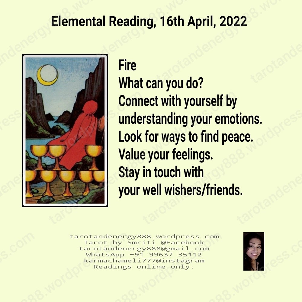 Hi! today I’ve done a five cards reading. It’s called the elemental spread. The five elements fire, earth, air water and spirit has one card each. You can choose either one or two or even three cards at a time, depending on your life situation. As you can see in the post all the five cards answers a different question. They can be used for different situations during the day. Enjoy!