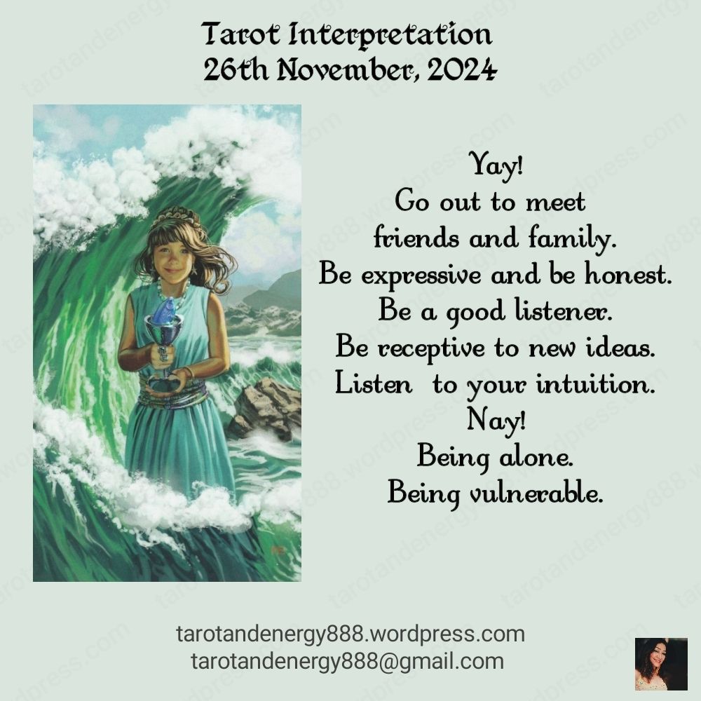 These readings are based on my intuitive energy and your consciousness. They will differ each time.