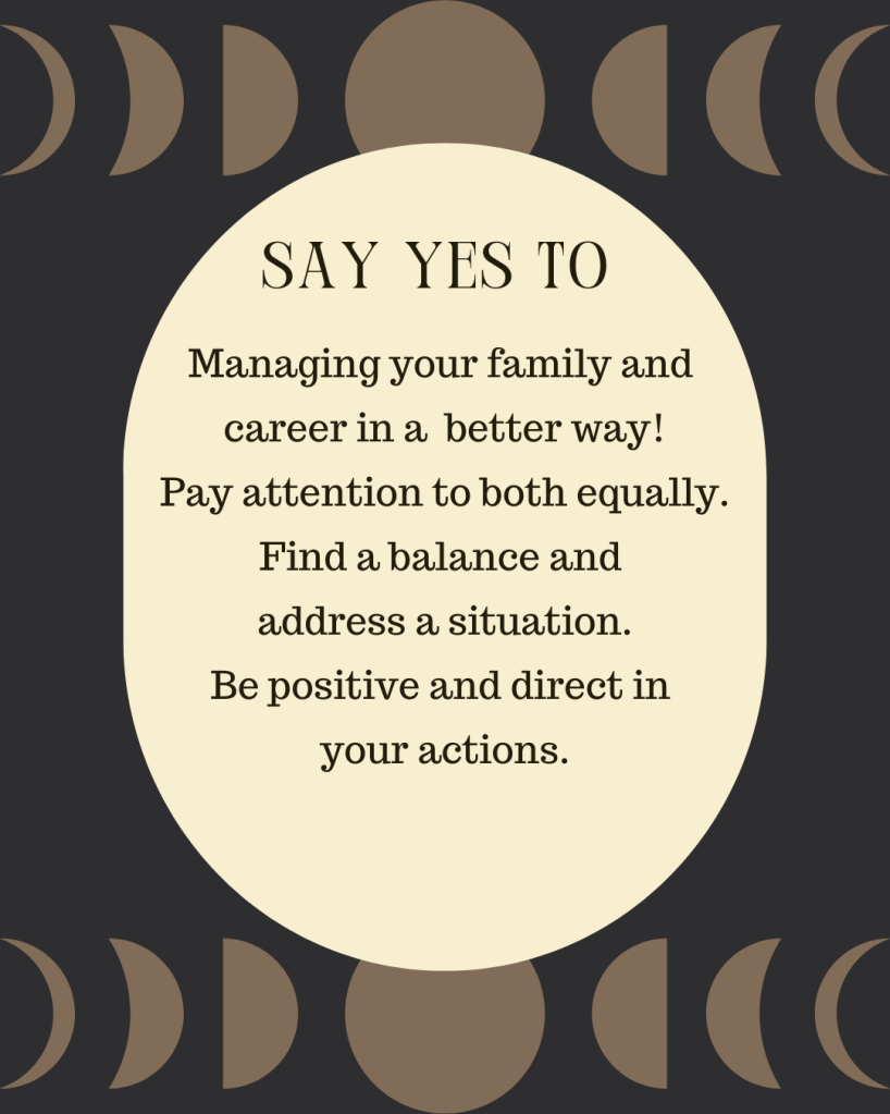 When facing challenges, take a step back, think clearly, and handle the situation with care. Whether it’s spending time with loved ones or working on your career, being fully present in both makes a big difference. Stay positive, take action, and communicate openly to maintain harmony.