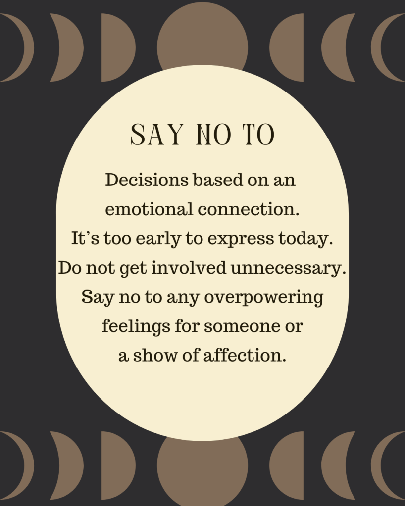 Avoid getting involved in unnecessary situations that donβt serve your well-being. If you feel overwhelmed by emotions or affection for someone, take a step back. Itβs okay to say no to overpowering feelings or displays of affection that might not be right at the moment.